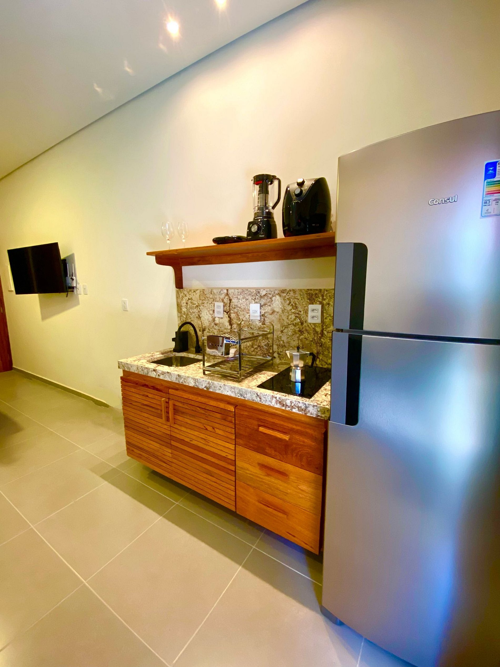 Sugestão poderia ter um micro-ondas no apartamento.