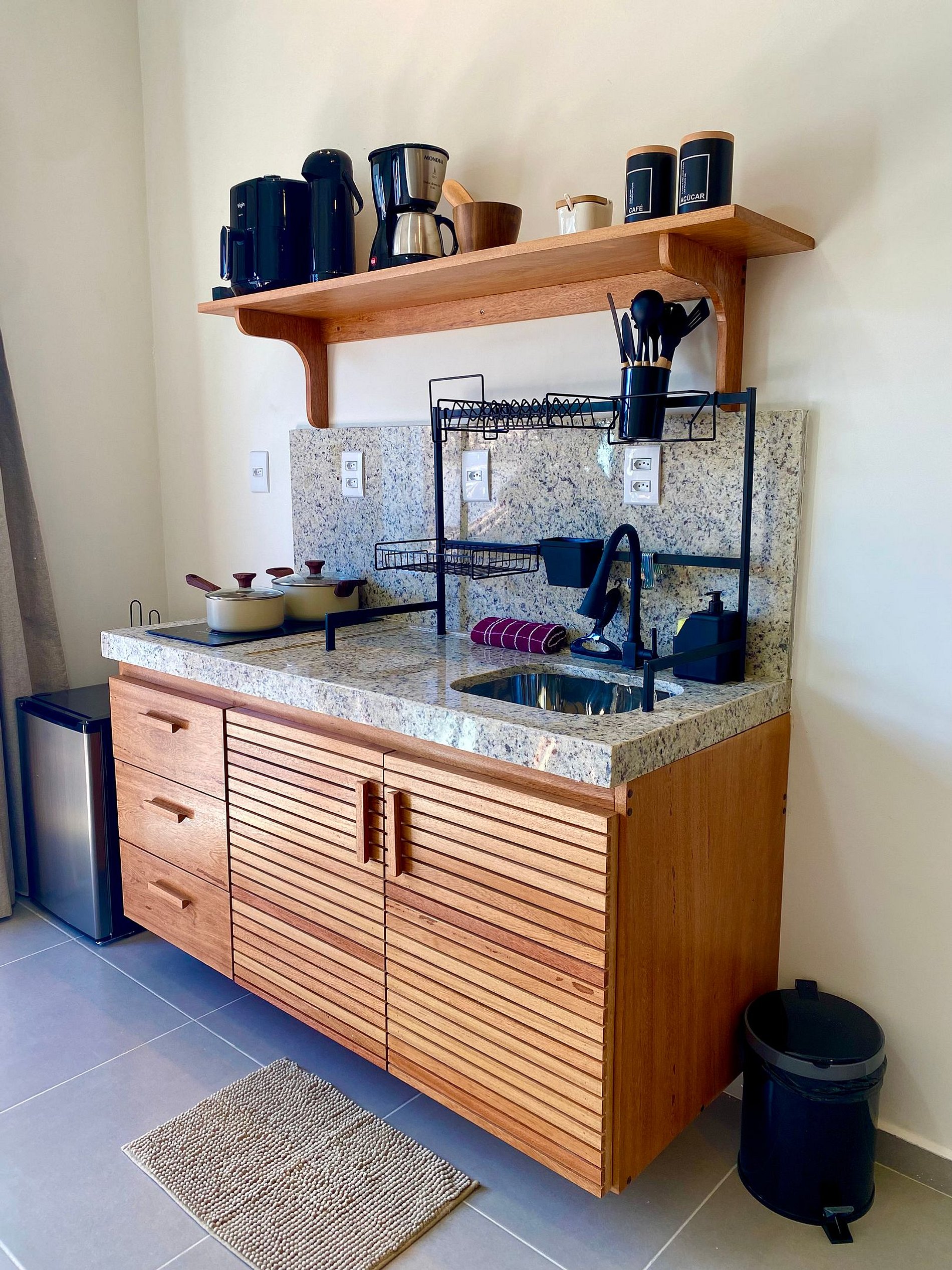 Bathed in natural light, our studio was designed to offer an inviting and functional environment, ensuring you feel at home from the very first moment. The space comfortably accommodates up to 3 people and is perfect for couples, small families, or solo travelers.