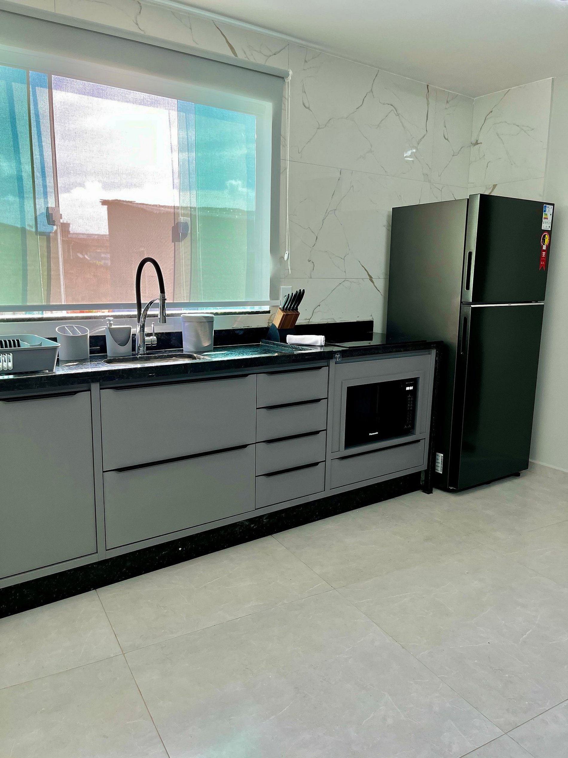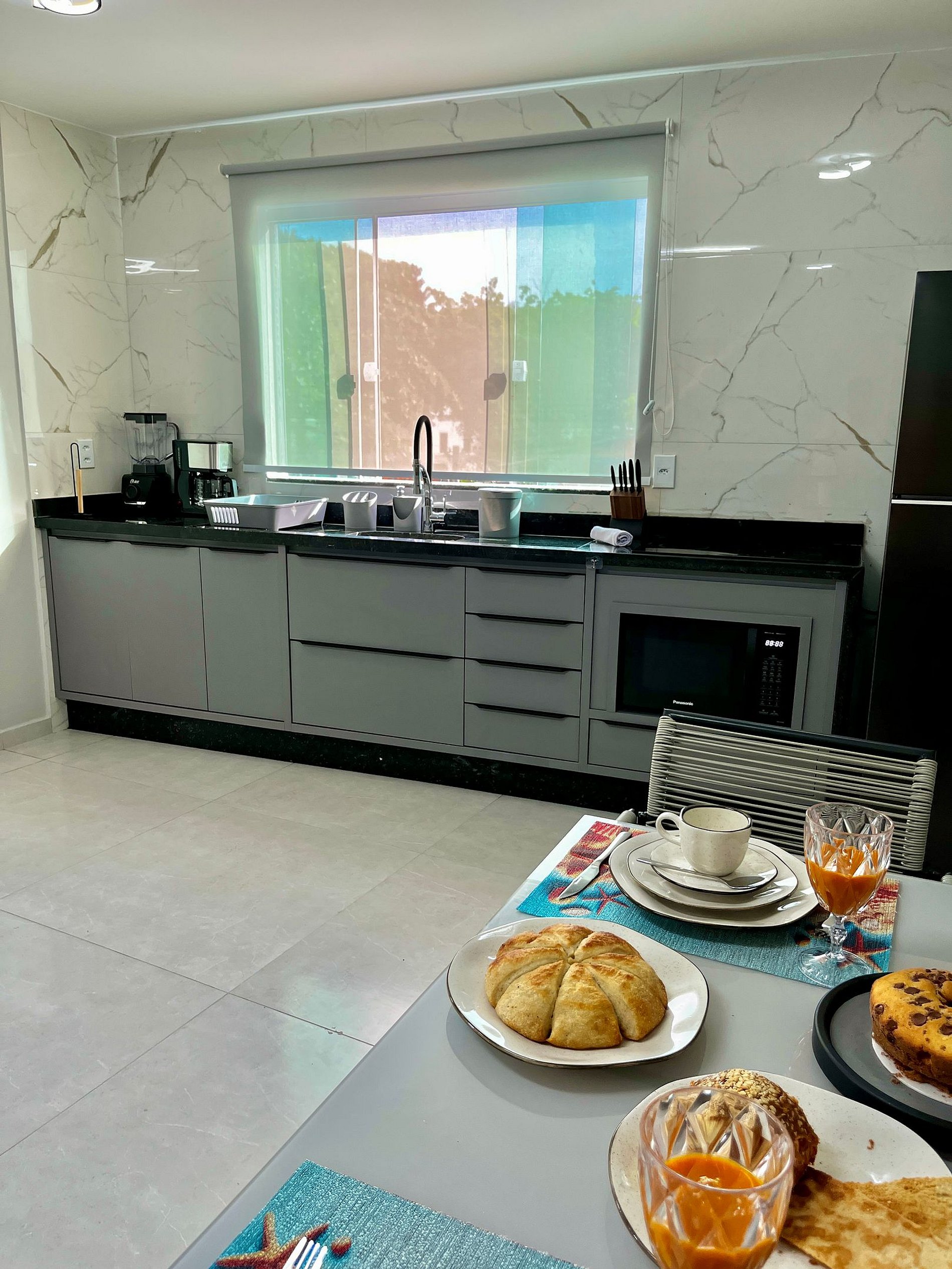 - Cozinha completa com utensílios, eletrodomésticos e cafeteira