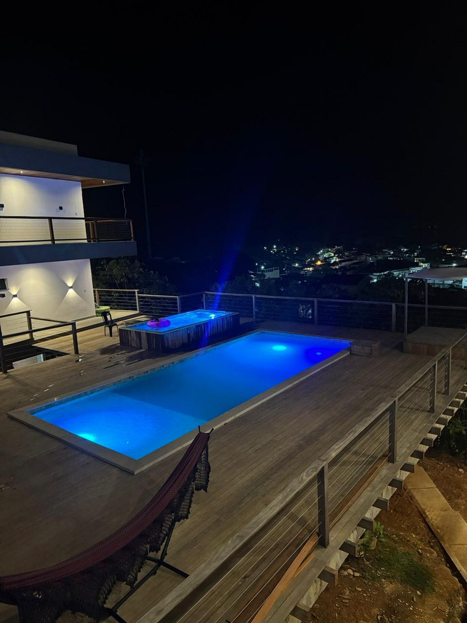 • Piscina com transparência, iluminação e vista panorâmica