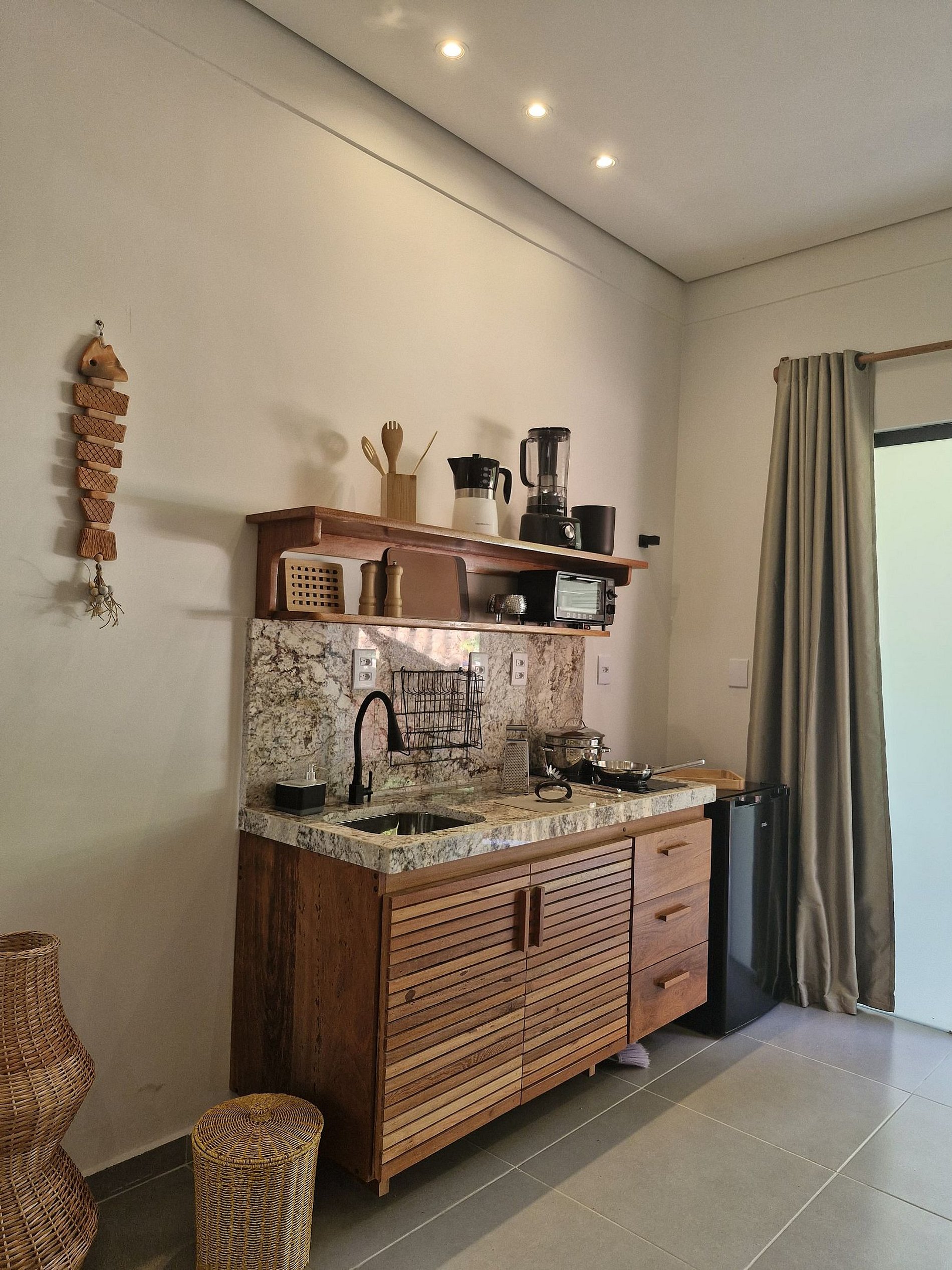• Liberdade na cozinha: Uma cozinha completa e super equipada com fogão, geladeira, liquidificador, utensílios básicos, cafeteira, etc, oferecendo a liberdade de preparar suas refeições favoritas.
