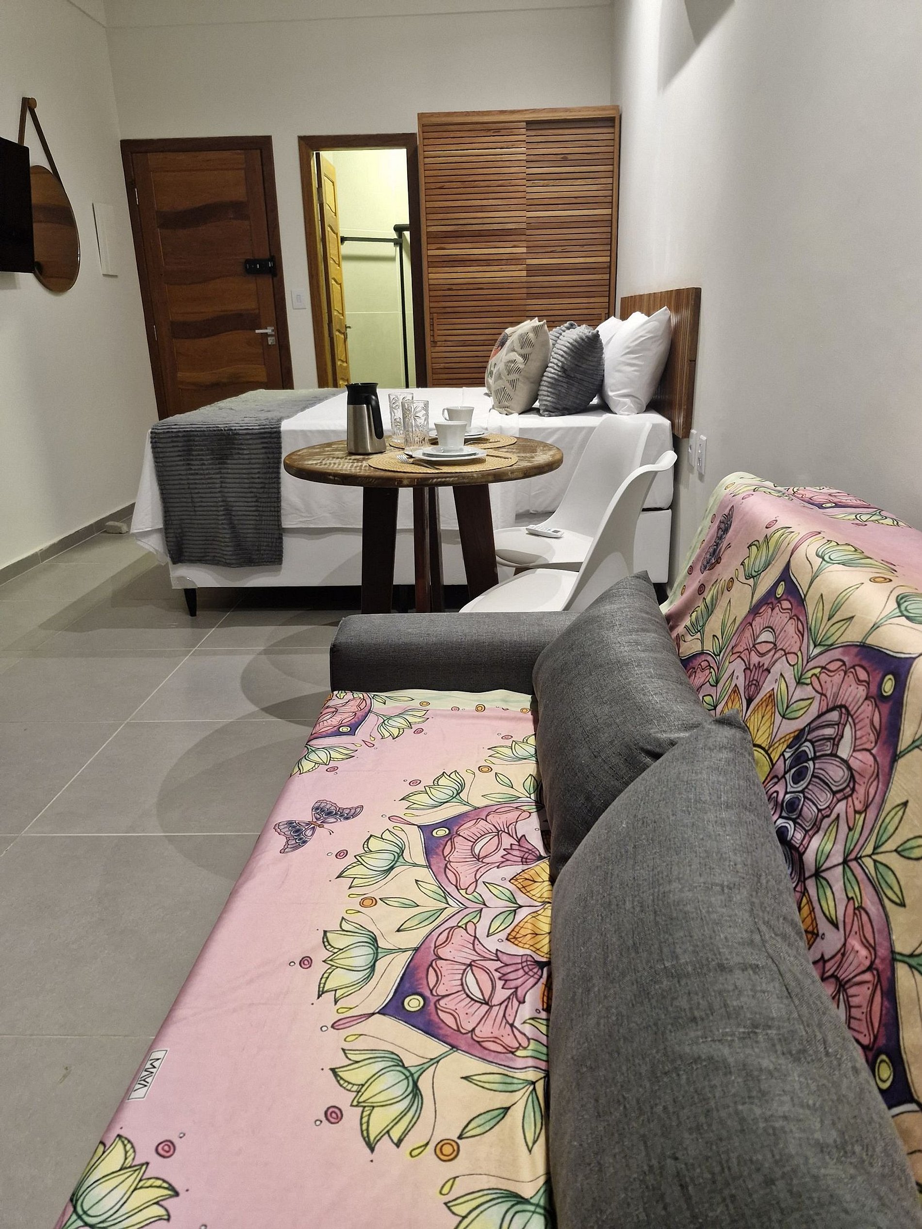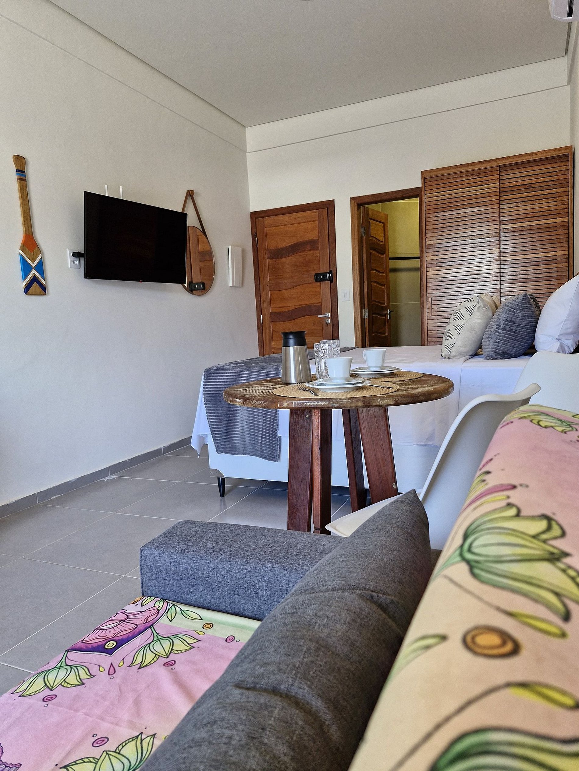 Imagine-se relaxando em um ambiente cuidadosamente planejado para o seu conforto, com uma decoração moderna que se harmoniza com toques tropicais, criando uma atmosfera acolhedora e relaxante.