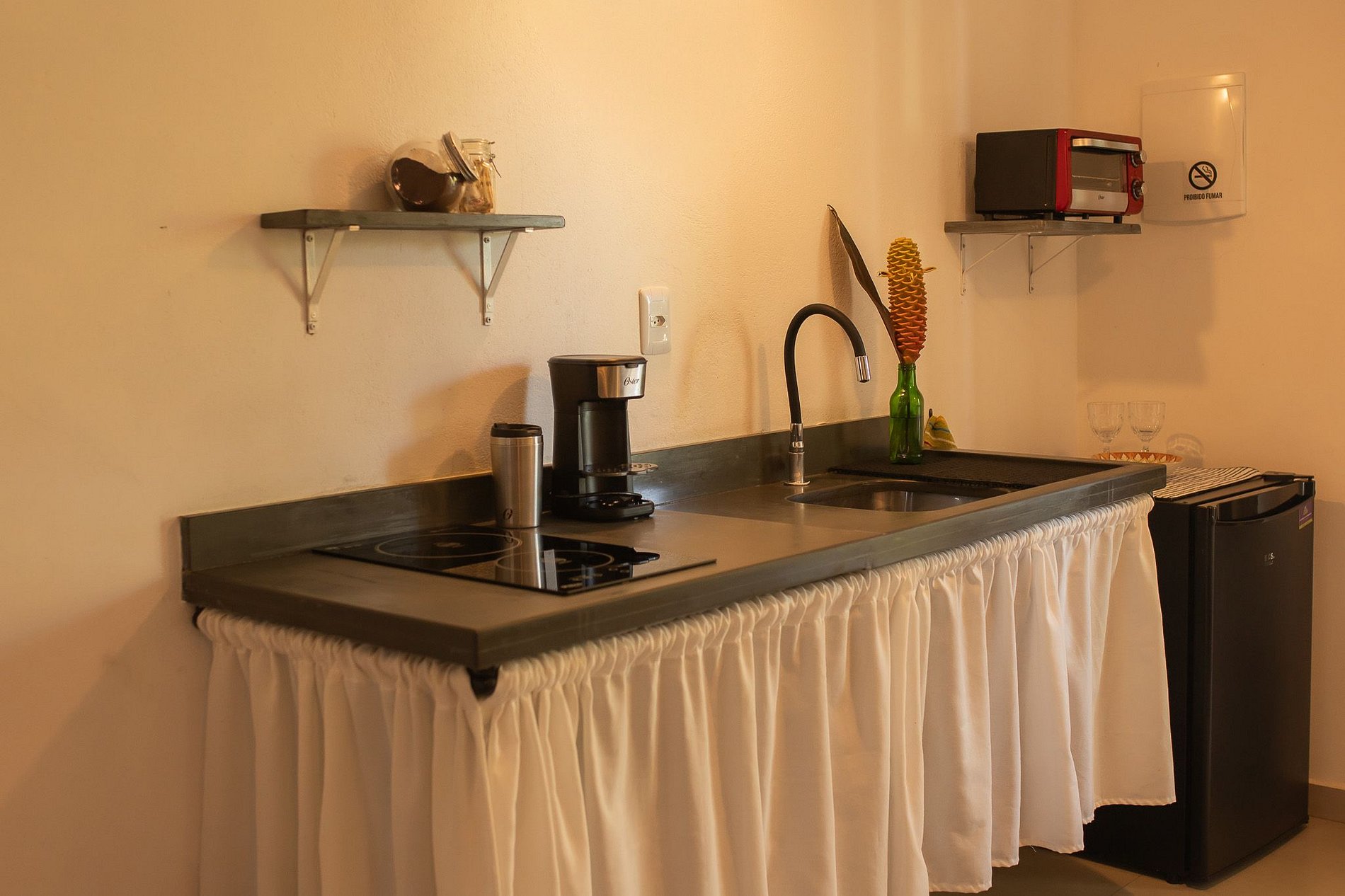 Faltou uma sanduicheira e uma garrafa de café (tem cafeteira elétrica).