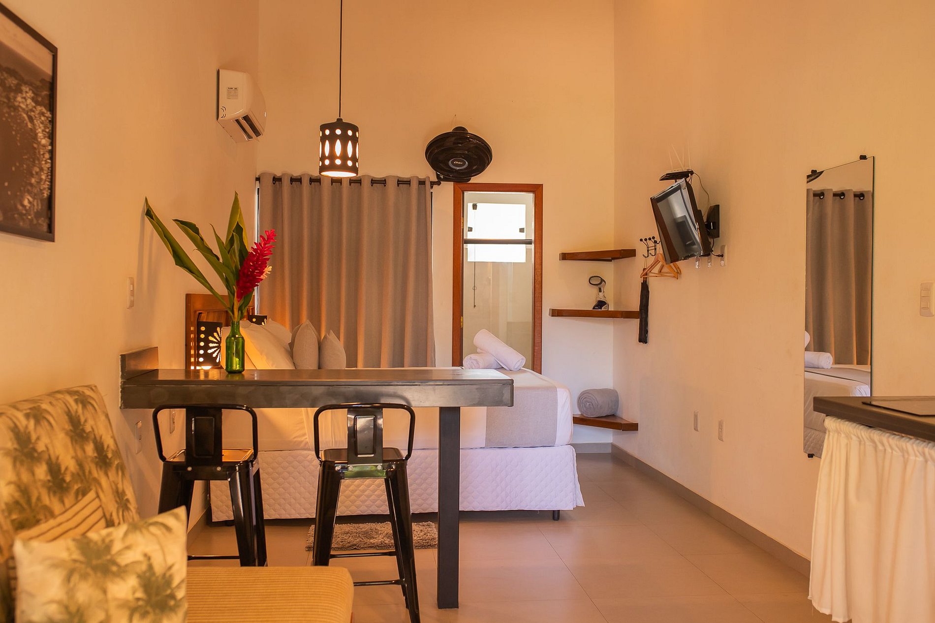 • Ar condicionado split central e ventilador também