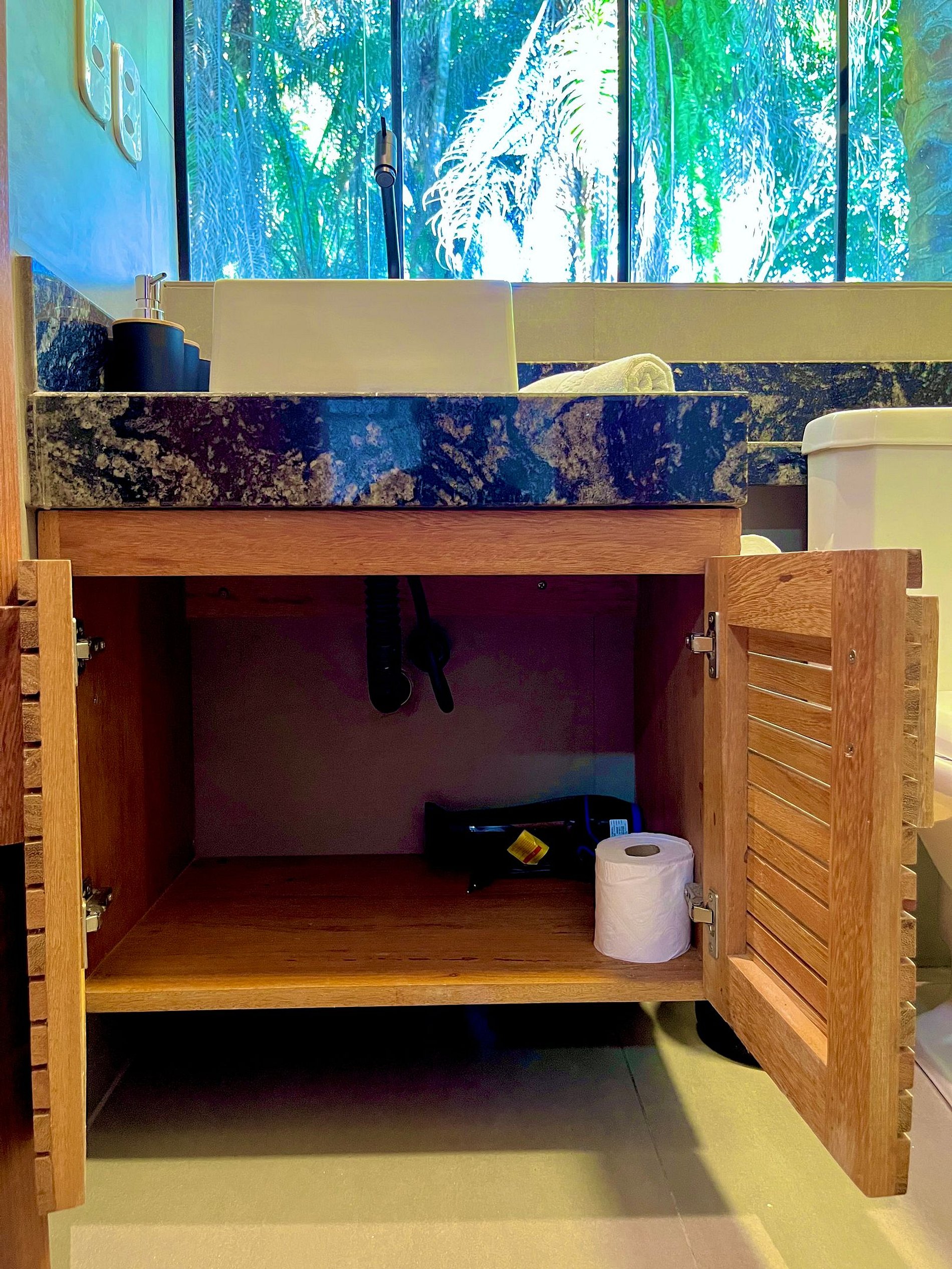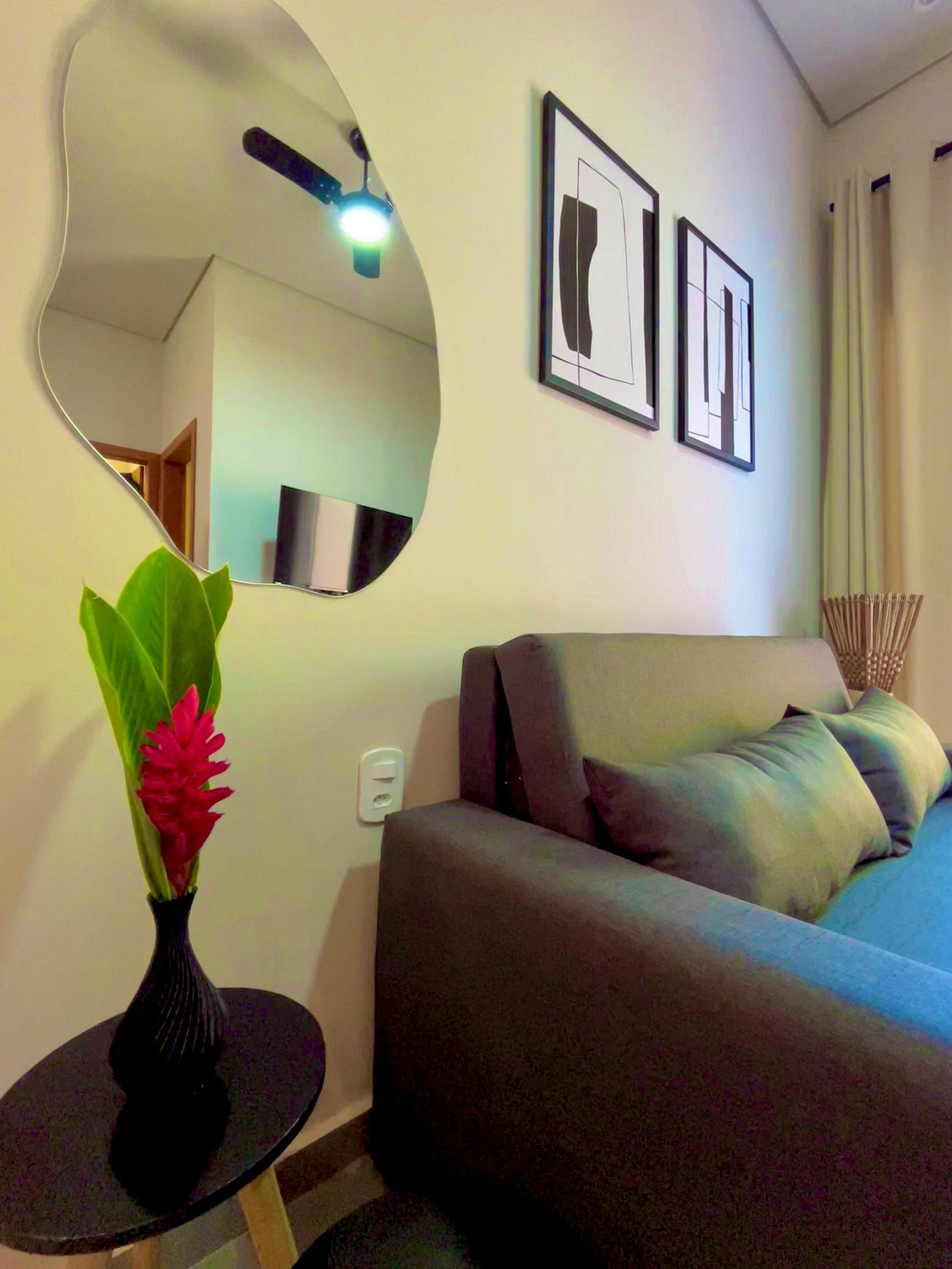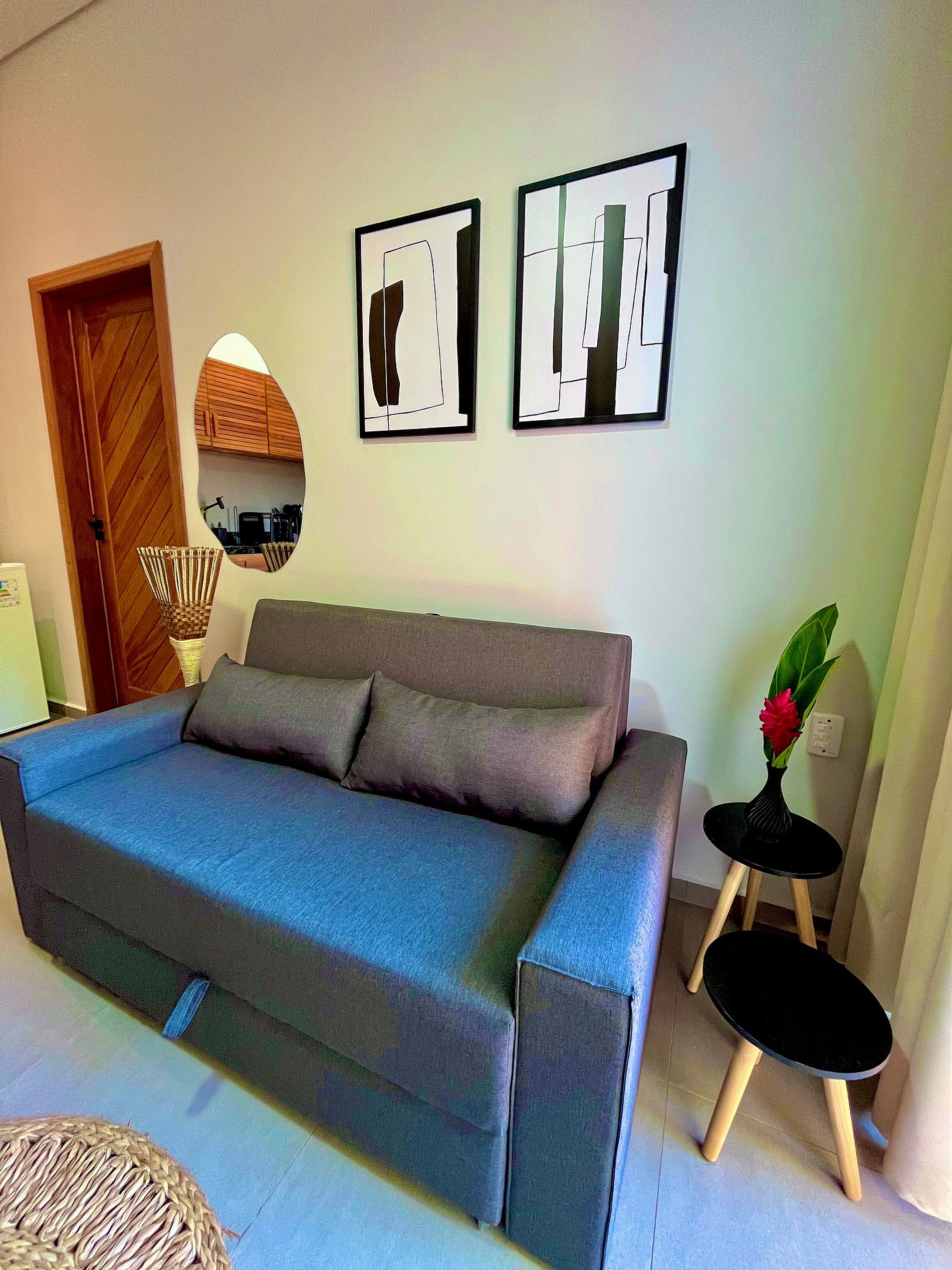 Sentimos falta somente de espelho no banheiro. Tinha um na sala e um pequeno no quarto longe da tomada. Ótima localização, tranquilo e seguro 5min da pituba e da concha e com mercado na esquina que tem de tudo.