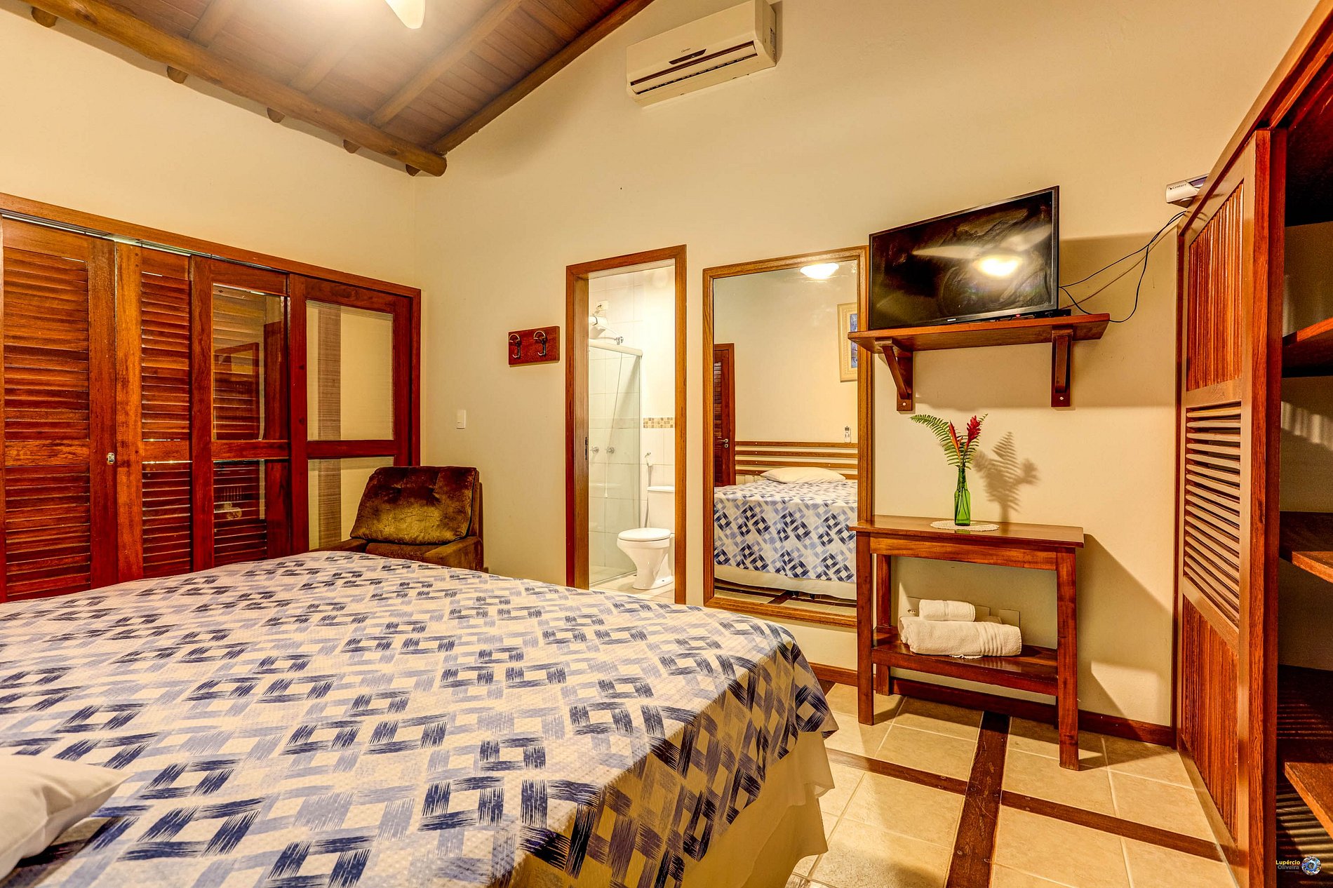 O conforto é a nossa prioridade. Todas as suítes contam com camas king size, ar-condicionado e enxovais de altíssima qualidade. A cozinha é super equipada com itens cuidadosamente selecionados e com uma churrasqueira com todos os itens para uma confraternização com sua família e amigos. A joia da coroa é a nossa piscina de 42m²: suas pastilhas de vidro criam um tom esverdeado único, convidando para um mergulho relaxante no elegante deque de madeira.